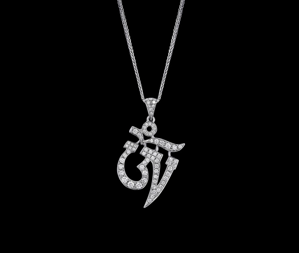 “Aum symbolises a sacred sound used in meditation. Placing the pendant at the base of the neck near the throat chakra reminds us of the power of words, and of expressing ourselves with the highest intent.”